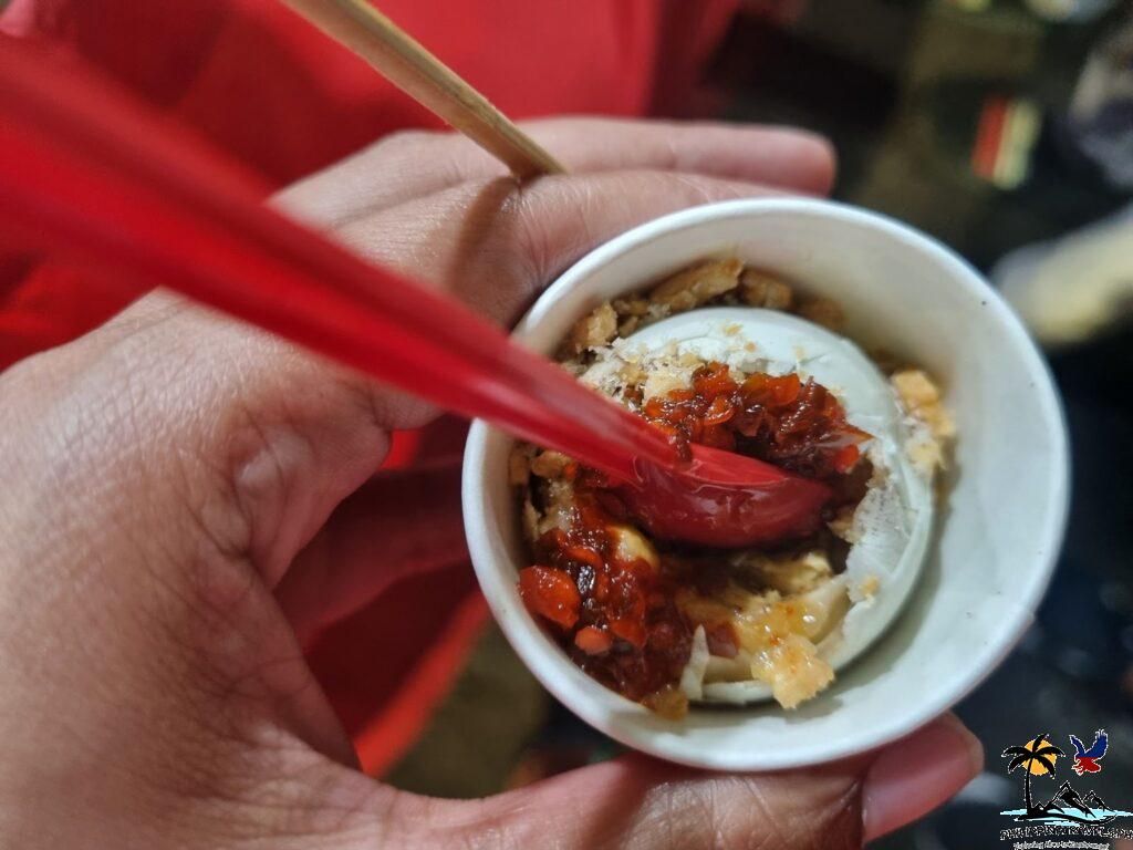 Try the kwek-kwek (quail eggs coated in orange batter and deep fried).